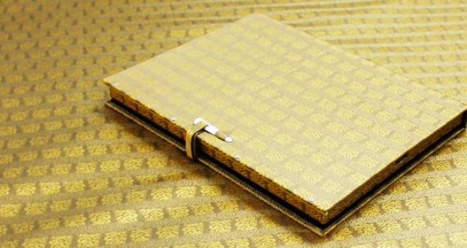 古来より和綴じ本を包み込むケースとして活躍してきた、帙(ちつ)。そして、古くより着物や袈裟、茶の湯の名物裂の仕覆や袱紗などに使われてきた伝統織物、裂地。両者の技術を使って作られたこちらのケース、御覧のようにとにかく和加減が半端ありません。