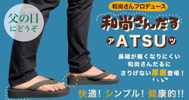 以前Japaaanで紹介した、和尚さんがプロデュースした普段履きサンダル「和尚さんだる」に、新商品「和尚さんだるATSU」が数量限定で登場しました。