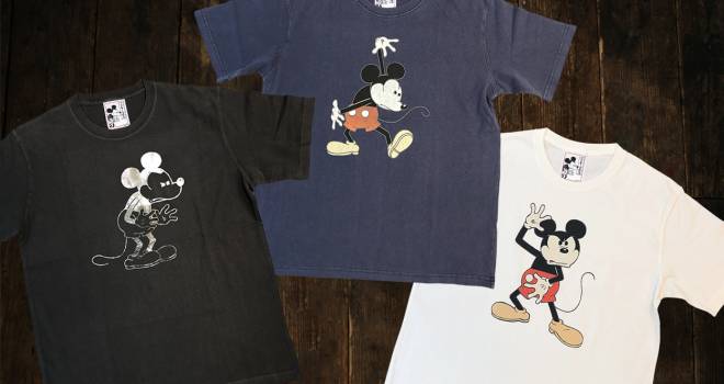 ピグメント染めの生地に、半ラバーや箔でミッキーがプリントされた雰囲気のあるTシャツや、老舗の仙田株式会社の8号帆布や国内外のファッションブランドから絶賛されるカイハラデニムの生地に、1824年創業のエンドー鞄の熟練した職人の技によって、縫い上げられたバッグやポーチなど、メイド・イン・ジャパンによるこだわりが詰まった製品がラインナップされています。