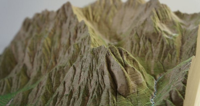 これは立派!2万5000分の1地形図の等高線情報を忠実に原寸表現されています。通常販売している通常のやまつみは5万分の1とのことで、今回発売される穂高岳の難易度は相当なもの。