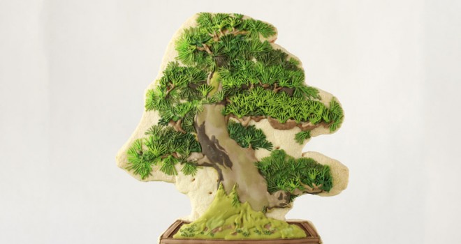 松のほかにもしだれ桜や梅の盆栽が全てお菓子で作られています。なんてメルヘンな盆栽でしょう、グリム兄弟もビックリ。平井理紗さんは盆栽の他にもいろいろなものを作品として作り上げます。もちろんクッキーで。