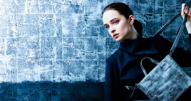 最大の特徴は、ヴィンテージな空気感と現代的なデザインが見事に調和している「箔面文様レザー」。美術品を高精度で再現する裕人礫翔氏の箔工芸の技法から生み出された「箔面文様」をグラビアロール捺染で表現する事で、普段使いに適した菱屋オリジナル素材の開発に成功したのだそう。