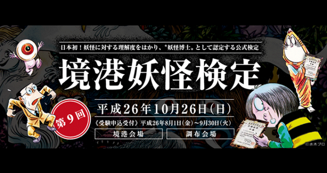 境港商工会議所および境港市観光協会が10月26日(日)に鳥取県の境港会場と東京都の調布会場で実施する、『第9回境港妖怪検定』の受験申込受付が8月1日(金)から開始されます。