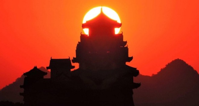 国宝であり世界文化遺産である姫路城。その姫路城と日の出が重なりあう珍しい光景が4年ぶりに出現したと神戸新聞が伝えています。