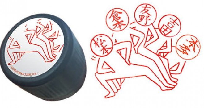まず初めにハンコさんを印鑑を押したい部分に押印します。そして空白になっている顔の部分にいつも使っているネーム印を押すと、なんとも可愛らしい人間味あふれるハンコさんが!