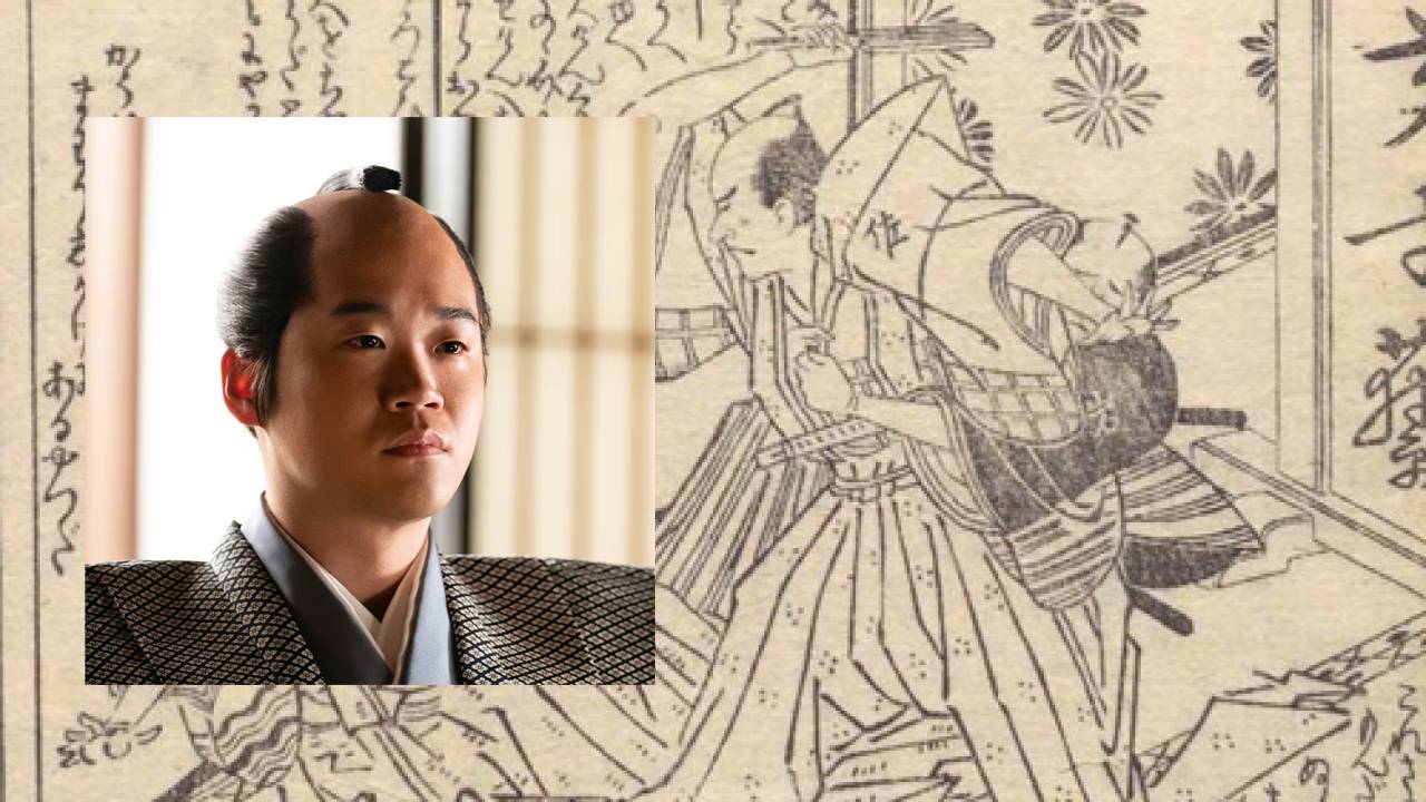 第6回放送「鱗(うろこ)剥がれた『節用集』」で、田沼意知に家系図を贈呈した佐野政言。