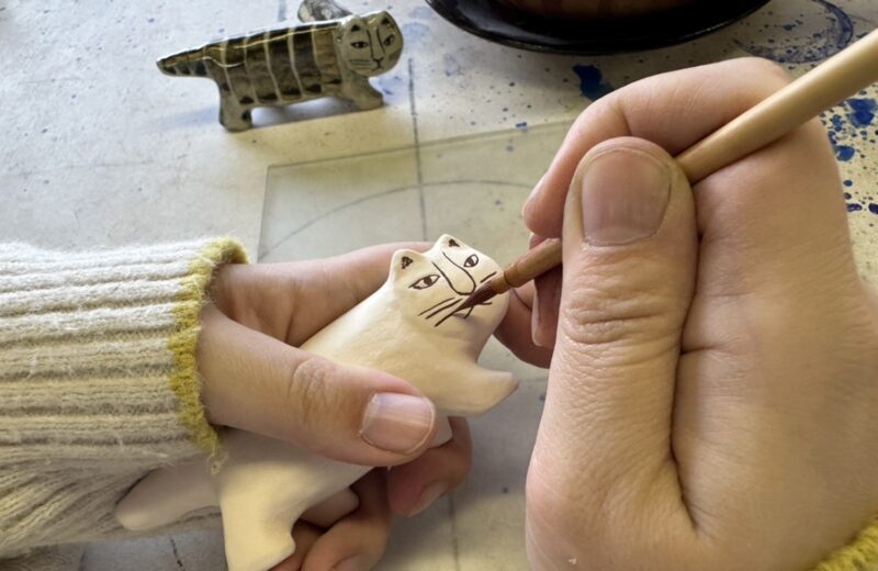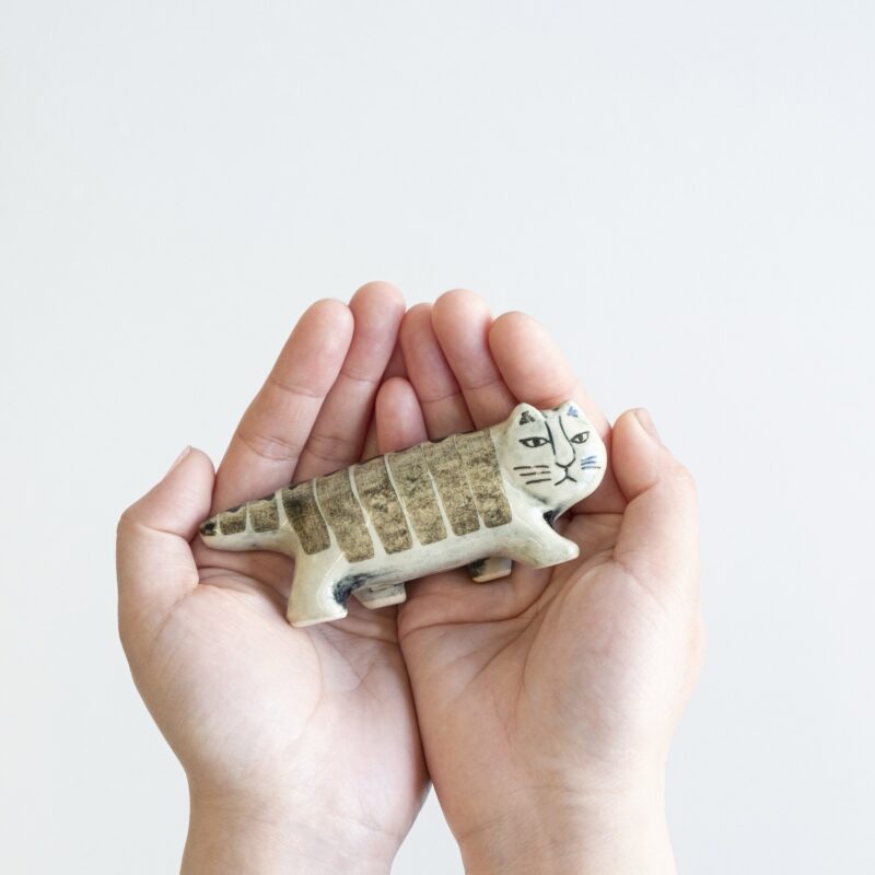 リサが作った猫を再現するとともに、伝統の釉薬と新しい着彩技法をかけあわせて生まれた野良猫。リサの原型の持つ、野良猫っぽいワイルドさを失わないように作られました。そのため、ボディの塗装にはムラやカスレがあり、顔は手描きで、職人の気持ちが表情に現れて、個体差が個性として出るようになっています。