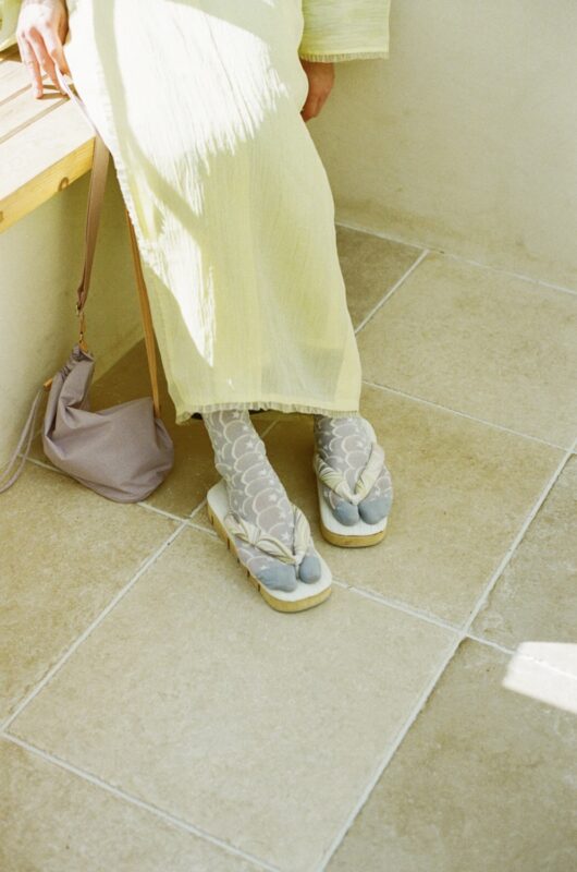 特徴的なデザインとして、足首に連なるラインや、2025年春夏のテーマに合わせた星を連想させる柄が施され、和服との相性はもちろん、洋服にも合わせやすいアイテムに。