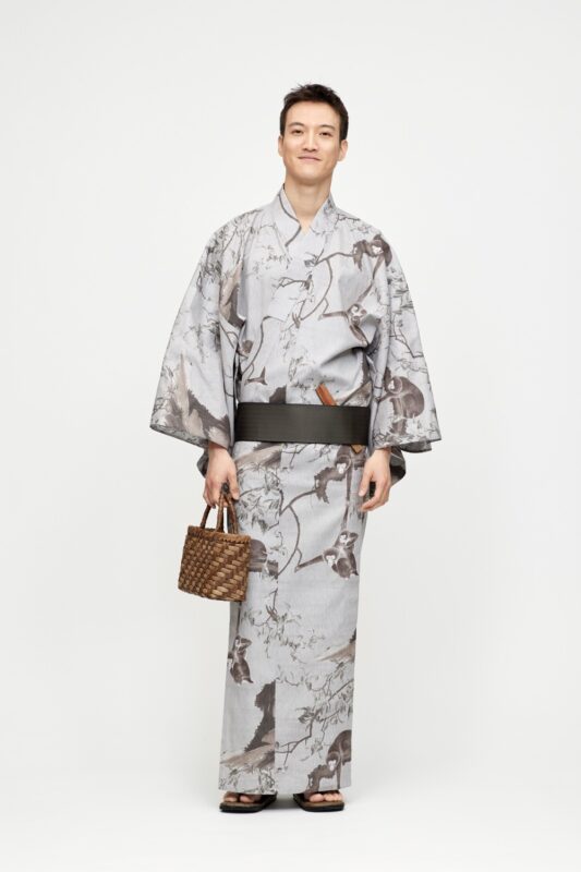 型染め 伊藤若冲 ゆかた / 猿猴摘桃図 / GRAY