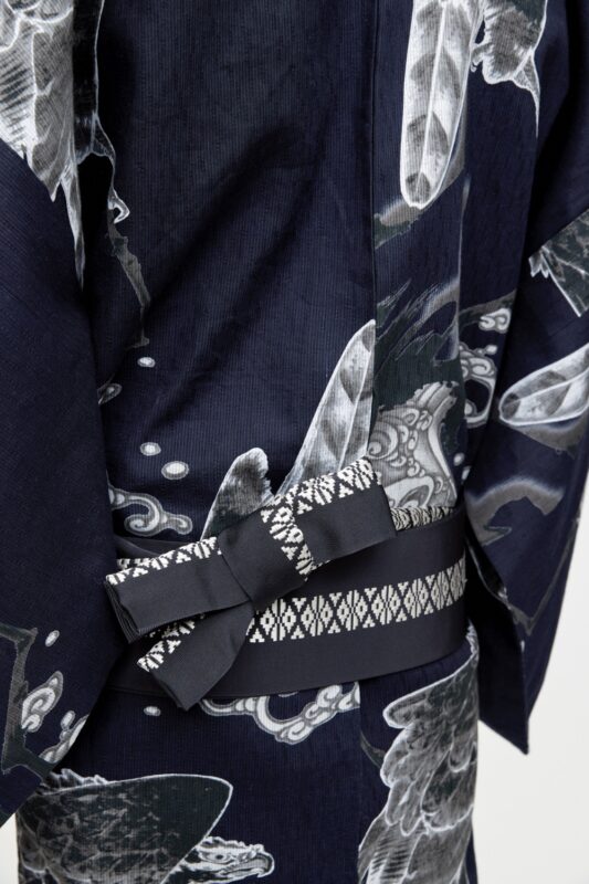 きもの着用時の悩みとして多い“帯結びの難しさ”を解消すべく、新発想の帯「締帯(しめおび)」を開発。シンプルで扱いやすい「伊達締め」の構造を応用し、伝統的な角帯の凛とした端正な佇まいを損なわず、兵児帯のような扱いやすさを実現させた帯です。