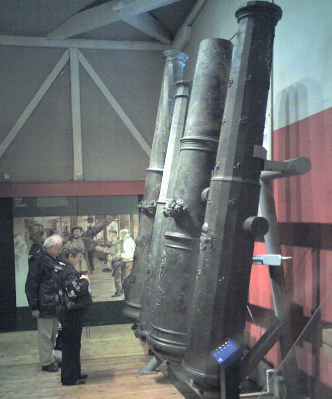 徳川方が使用した大砲の中には、長い射程距離を持つイギリスから輸入した最新兵器・カルバリン砲4門、セーカー砲1門が含まれており、こうした大砲によって昼夜を問わず大坂城内への集中砲火が加えられました。