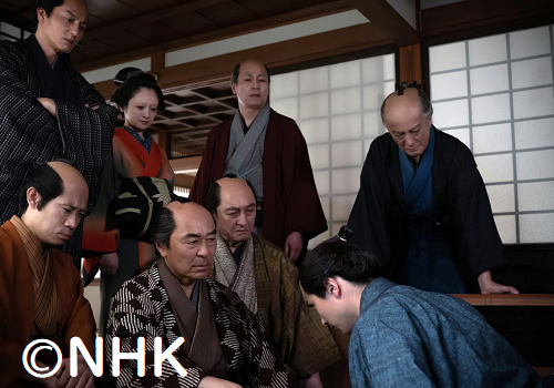 和泉屋の葬儀に参列するも、雨ざらしの仕打ちをうける忘八たち。それぞれの表情が胸を打つ。NHK大河ドラマ「べらぼう~蔦重栄華乃夢噺~」公式サイトより。2