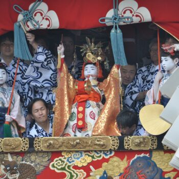 巡行中にくじ改めが行われ、京都市長が大紋烏帽子姿の奉行に扮し、くじ取り式で決定した巡行順位に従い順位を正します。そして、午後2時頃にはら長刀鉾稚児が八坂神社を訪れ、授かった正五位少将・十万石大名の位を返す、お位返しの儀が行われます。