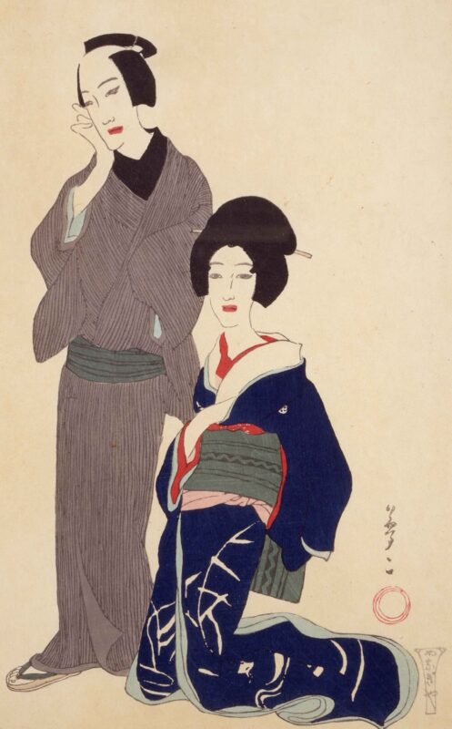 本殿では、竹久夢二が浮世絵の何に魅了され、どのようにその要素を自身の作品に取り入れたのか――江戸趣味や南蛮趣味、美人画、風景画などのモチーフや木版画制作へのこだわりを紹介しながら、浮世絵と夢二作品が比較展示されます。