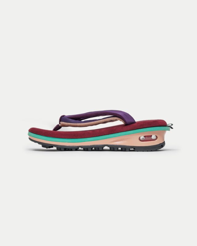 そんな「unda DUAL」に新登場したカラー「COLEUS」は、パープルとグリーンが葉の中で溶け合う配色美が特徴の植物「コリウス」から着想を得てデザインされています。幾つもの色を組み合わせ、足元に彩りのレイヤーを重ねた一足は、大胆な配色ながらも落ち着いた空気感をまとった一足に。