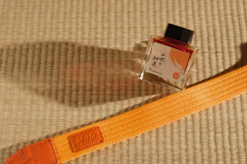 畳のように落ち着きのある緑は、洋装だけでなく和装で使用する際にも似合う色に仕上がりました。ストラップ自体の主張も激しすぎず、カメラの魅力をそっと際立たせてくれる縁の下の力持ち的存在の色であるように思います。