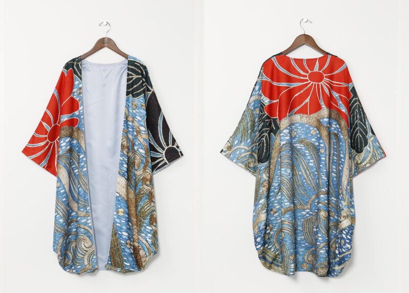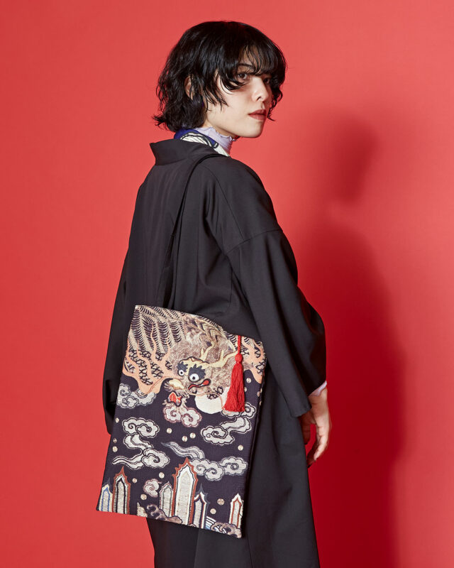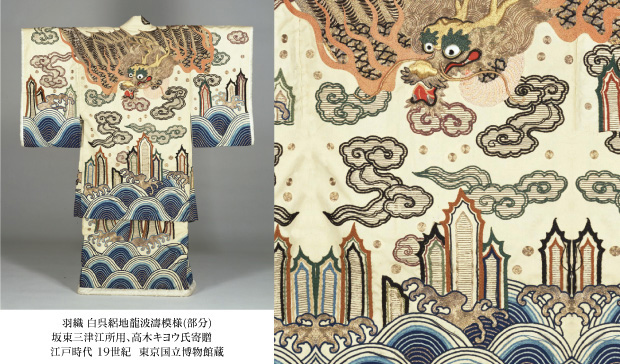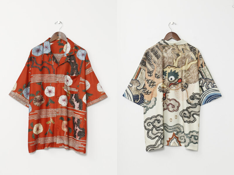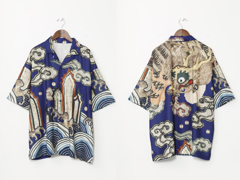 「倭物やカヤ」から登場したコラボレーションアパレルは、東京国立博物館所蔵の染織資料「着付 白呉絽地龍波濤模様(きつけ しろごろじ りゅうはとうもよう)」をもとに、現代のファッションとして再解釈したシリーズとなります。