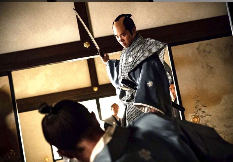 そして、殿中で突然立ち上がり、刃を抜いて意知に斬りかかる佐野。