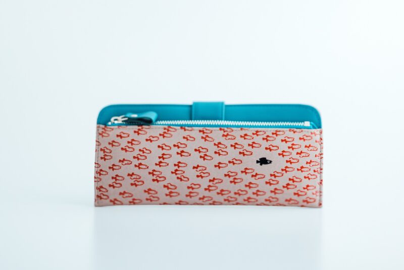 愛らしい魚影に一点の黒、素朴にも健気な物語、にじむ水彩の世界観をどこまで印伝の技で忠実に表現できるのか。ひとが生きてゆくうえで大切なことを真っ直ぐ、子どもたちの心に伝えてきた物語への尊敬を込めたコレクションとなっています。