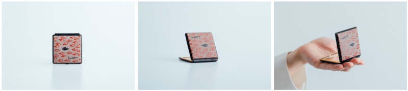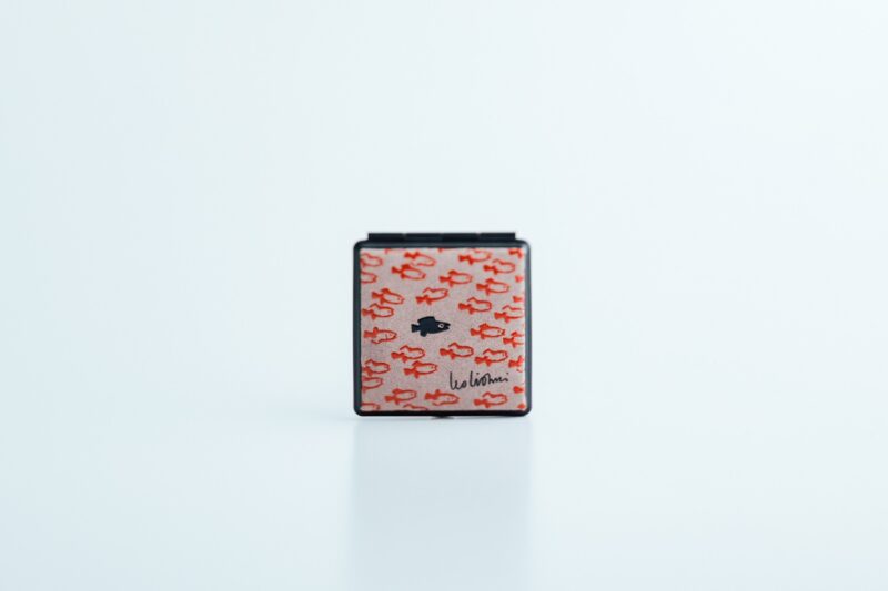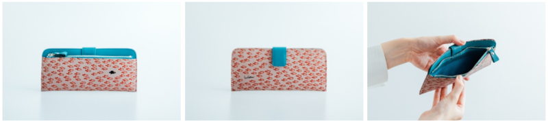今回発表された「スイミー」とのコラボレーション商品は、小銭入、がま口、束入(長財布)、名刺入、パスケース、ポーチ、ミラーの全7種類がラインアップ。柔らかなグレージュの鹿革に、小さな赤い魚たちと黒いスイミーを、艶やかで立体感のある漆で生き生きと表現しています。