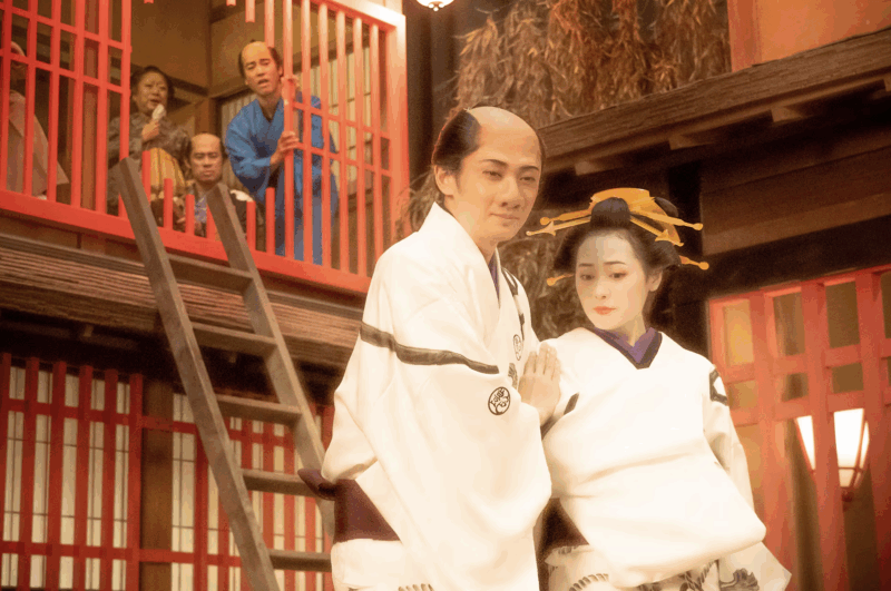 登場人物たちの素人っぽい大げさな棒演技がより「作り物のフィクション」話であることが強調されて、実に笑えましたね。そして、このド派手な心中駆け落ち騒動で、誰袖は笑顔になり、視聴者は涙する場面に。【後編】の記事はこちらから