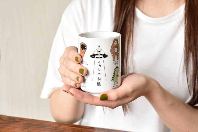今回紹介するのは、エイリアンやネッシー、ツチノコなどUMA(ユーマ/未確認動物)のイラストが描かれた「YURU-MA寿司湯呑」です。