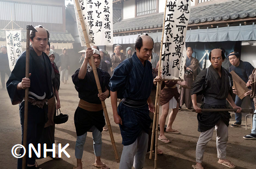 何とか止めようとした蔦重は袋叩きに。この光景、第1回放送以来かも知れません。