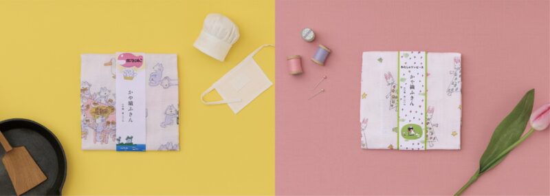 また、これまでの「かや織ふきん」に加え、大判で薄手の「花ふきん」タイプも初登場。使うほどにやわらかくなり、吸水性に優れ丈夫で長く使えるふきんは、台所や食卓で使うのはもちろん、「花ふきん」はお弁当包みや風呂敷としても使える大きさで、日常にも取り入れられます。