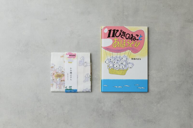 ロングセラーの「かや織ふきん」と名作絵本がコラボレーションした「絵本ふきんシリーズ」、今回は、1972年発行の絵本『11ぴきのねことあほうどり』と、1969年発行の絵本『わたしのワンピース』のふきん2種がラインナップ。