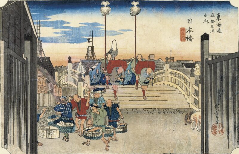 一方の歌川広重(うたがわひろしげ)は、名作「東海道五拾三次之内」を世に送り出した浮世絵師です。卓抜した画面構成はあくまでも人間を主役とし、抒情に満ち躍動感あふれる風景画は、後期印象派の画家たちを魅了しました。