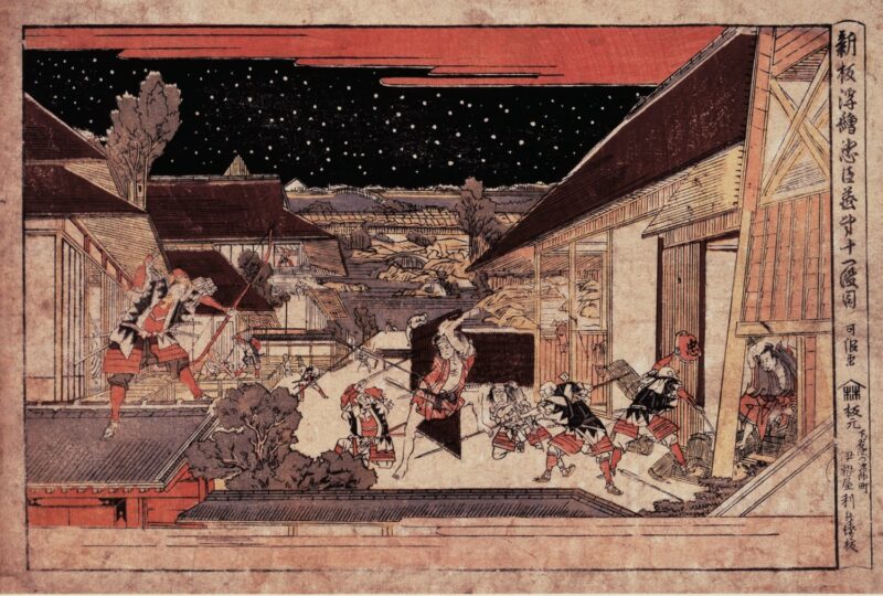 現代においても、日本人に人気の高い歌舞伎の演目「忠臣蔵」。歌舞伎だけでなく、映画やドラマで繰り返し登場するこの忠義の物語は、発表当時も大ブームを巻き起こし、浮世絵師たちはこぞって「忠臣蔵」を描きました。本章では、北斎と広重が描く「忠臣蔵」を比較展示するとともに、二人が描いた役者絵、武者絵を紹介します。