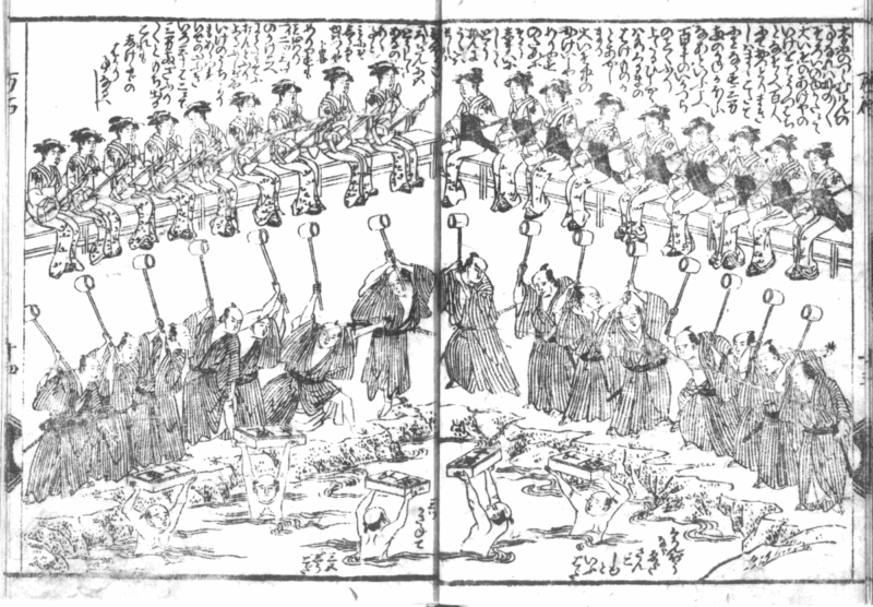『文武二道万石通』(朋誠堂喜三二作)は、定信の「文武!文武!」と、武士に学問と武芸の両方に励めというお達しを茶化すような内容。