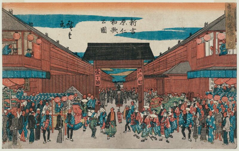 歌川広重「新吉原仁和歌之圖」ボストン美術館蔵※門は大門ではなく江戸町一丁目の木戸門