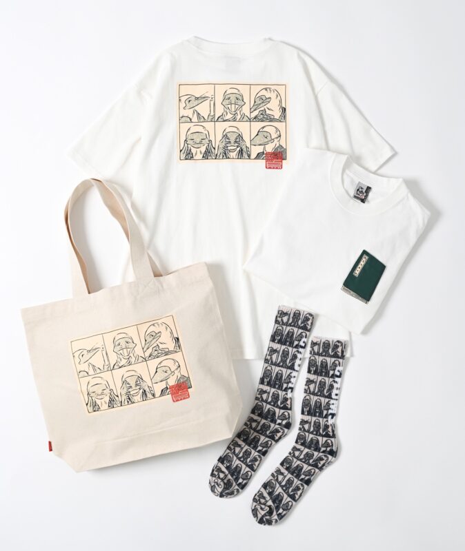 今回発表されたコラボアイテムでは、Tシャツをはじめとするラインナップには、北斎の“大波”とブービーバードが見事に融合されたデザインや、『北斎漫画』の中に登場する6つの表情をブービーバードで表現したユーモアあふれるアートワークなど、2種類のデザインを展開。