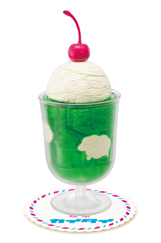 透明感のあるさわやかなソーダパーツ、グリーンに映える白い雲パーツ、さらにバニラアイスと真っ赤なさくらんぼをアクセントにした、王道スタイルのクリームソーダを再現。