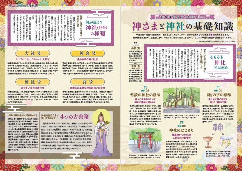 また、知れば知るほどおもしろい神さまと神社の基礎知識や、集めるのも嬉しい御朱印の特集も。神社や神さまの背景を知ることで、より参拝が興味深くなれる一冊となっています。