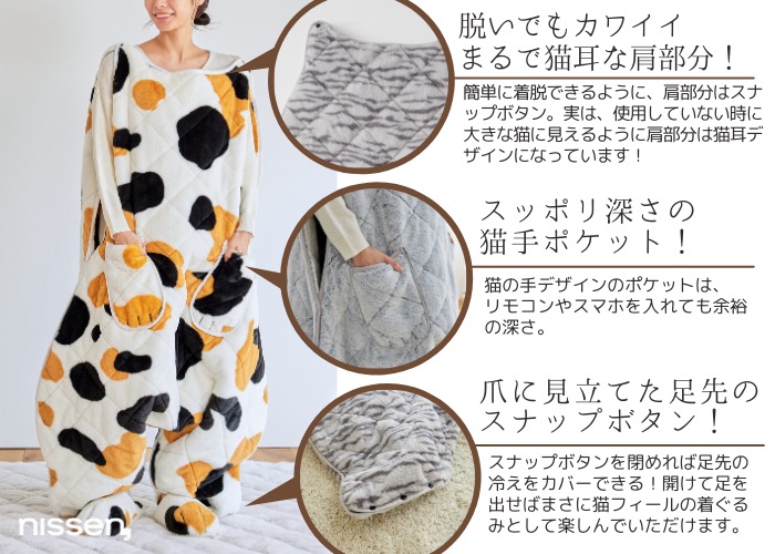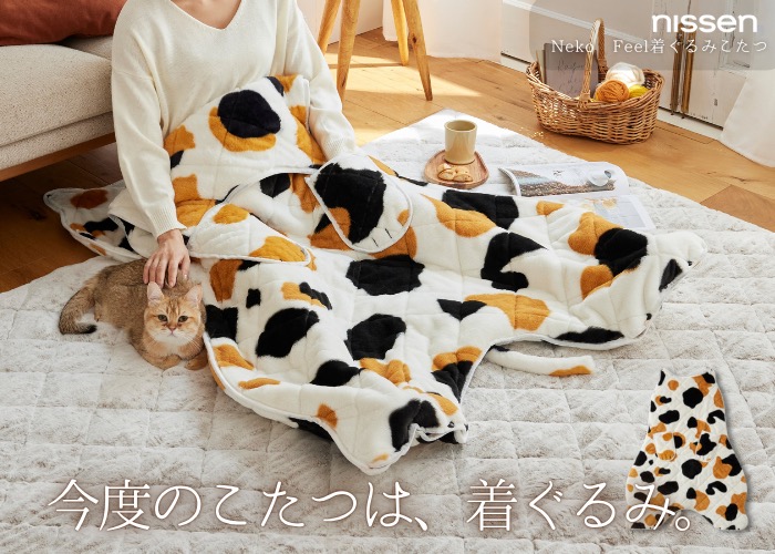 そんな「猫フィール」から新登場の本アイテムは、「猫×こたつ×着ぐるみ」という、これまでにない新しい発想から誕生。猫はこたつに入るとなかなか出てこない……あの至福を人間が“着て”持ち運べたら暖かそう という妄想が膨らみ、形になった商品です。