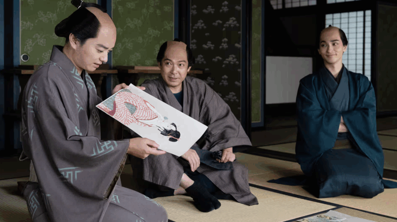 歌麿の美人大首絵が売れ、商人から「うちの看板娘の絵を描いてくれ」と大量発注を受けた蔦重。「弟子に描かせサインだけすればいい」というデリカシーのない蔦重に対し、歌麿は、“一点一点を心を込めて大切に描きたいのに”と、クリエイティブの方向性の違いに悩みます。