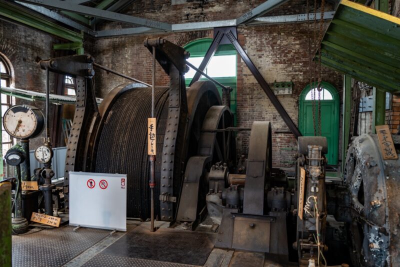 ちなみに、施設で利用された機械類は、日本製のものだけではなく、イギリス、ドイツ、アメリカ、スイス製のものもありました。たとえば、安全灯室及び浴室、事務所はイギリス積みの煉瓦造り、第二竪坑櫓の鋼鉄はイギリス製であることが判明しています。
