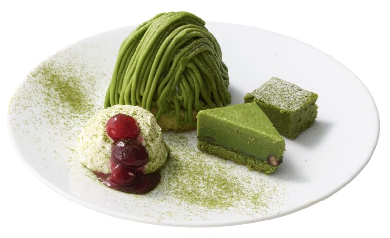 新作の「抹茶食べ比べプレート」では、昨年好評だったプレート(抹茶モンブラン、抹茶ガトーショコラ、クレームダンジュ風)に抹茶テリーヌを新たに加え、全4種の抹茶スイーツを一度に楽しめる特別感あふれる一皿を昨年と同じ価格で登場。