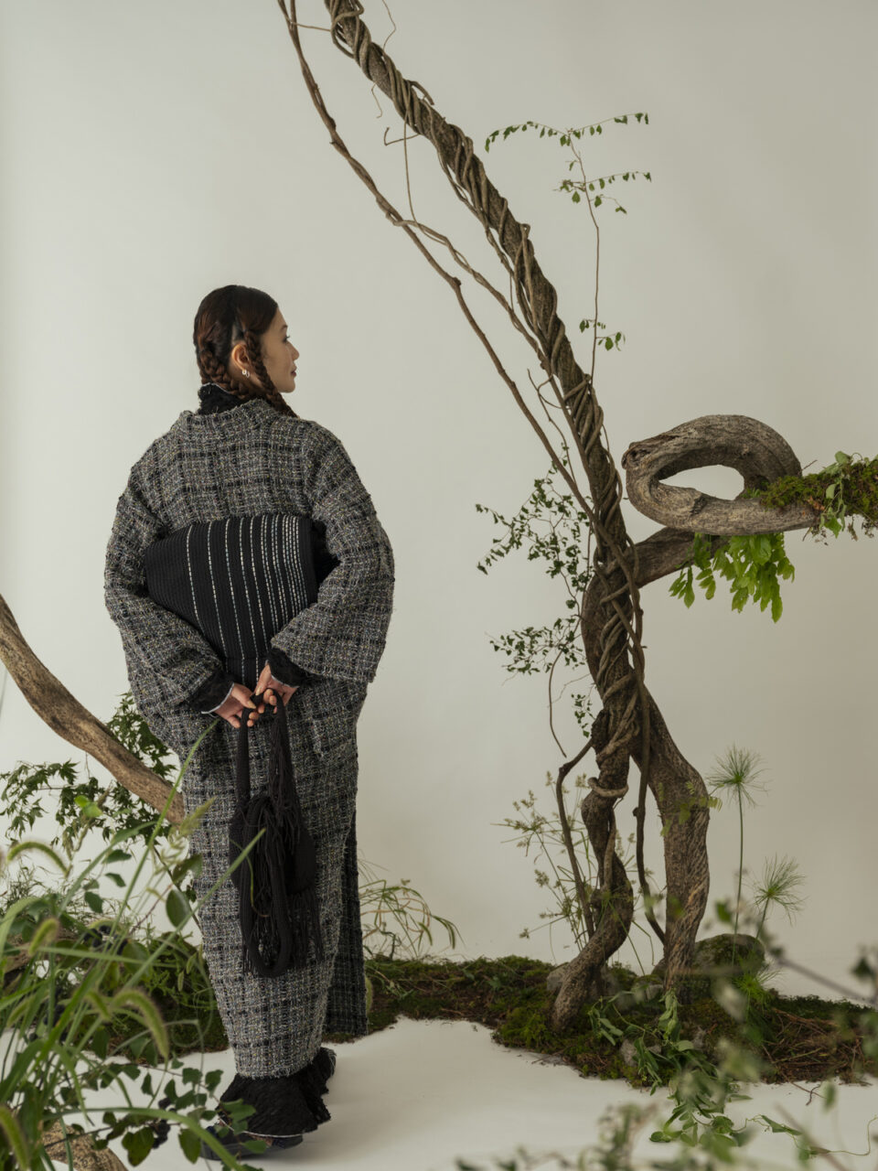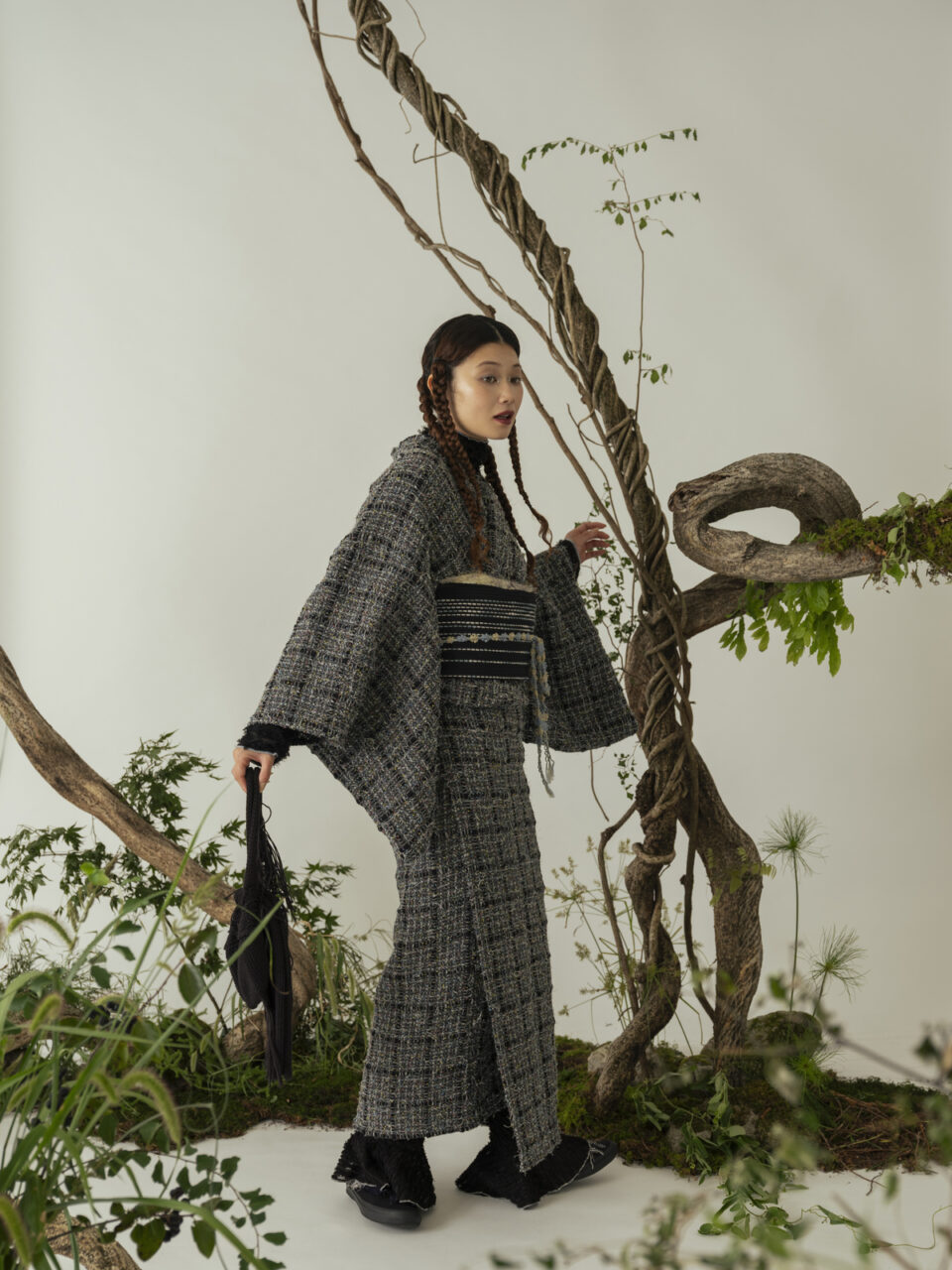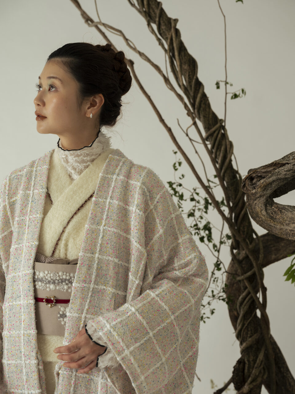 「2025 Autumn & Winter Collection」の第4弾では、フォーマルシーンのスーツやジャケットにも使われるツイードやウール生地を中心に、糸の魅力と手しごとの温もりを掛け合わせたきものを展開。