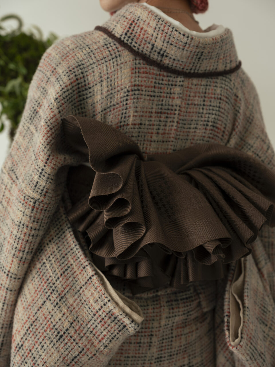 ジャケットなどに用いられるツイード生地を使用したきものと、きものに合わせるコート「道中着」を製作。
