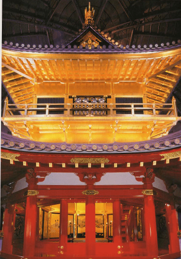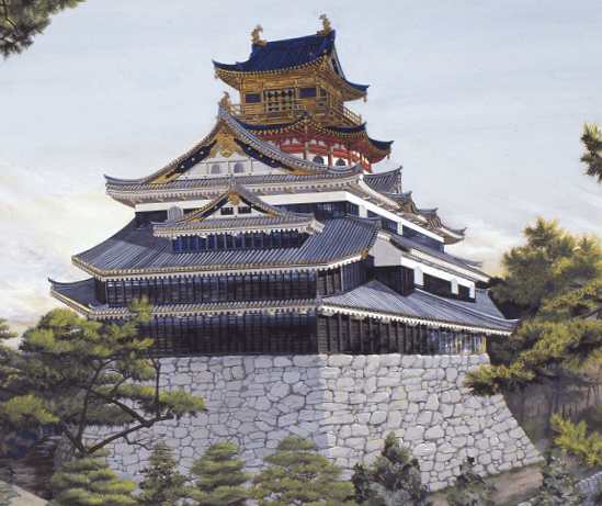 安土城天主の在りし日の姿を偲ぶなら、安土考古学博物館と隣接する信長の館(安土駅から徒歩約25分)を訪れるのがおすすめです。ここには、安土城や信長に関する豊富な史料がわかりやすく展示されており、さらに信長の館には、豪華絢爛という言葉がふさわしい安土城天主最上部二層を詳細に復元した実物大の展示が設置されています。