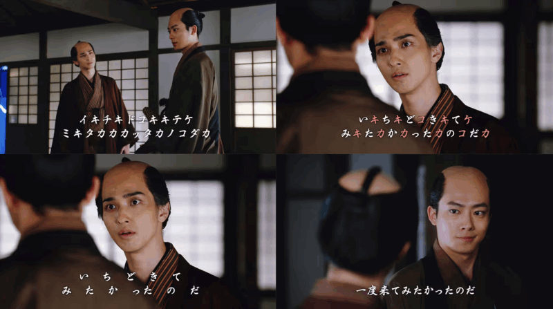 「それだけでわざわざ立ち寄ったのですか?」と不審そうに尋ねる蔦重に、「イキチキドコキキテケミキタカカカッタカノコダカ」と、照れ気味に早口で言います。