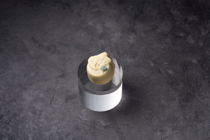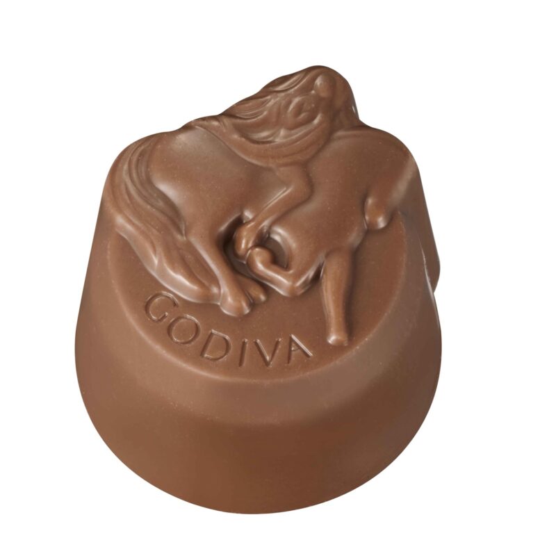 甘酸っぱくさわやかな味わいのラズベリーオレンジガナッシュをホワイトチョコレートで包み、酸味と甘味のハーモニーが絶妙のひと粒。レディ・ゴディバをデザインしたホワイトチョコレートに淡いブルーのハートが付いていたら、当たり。