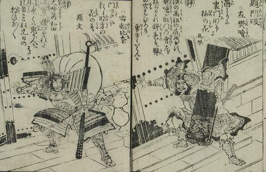 門破(もんやぶり)や薙刀、先陣に弓勢(ゆんぜい)など9つのお題で武者絵を描き、俳句と人物評を添えた俳諧集です。