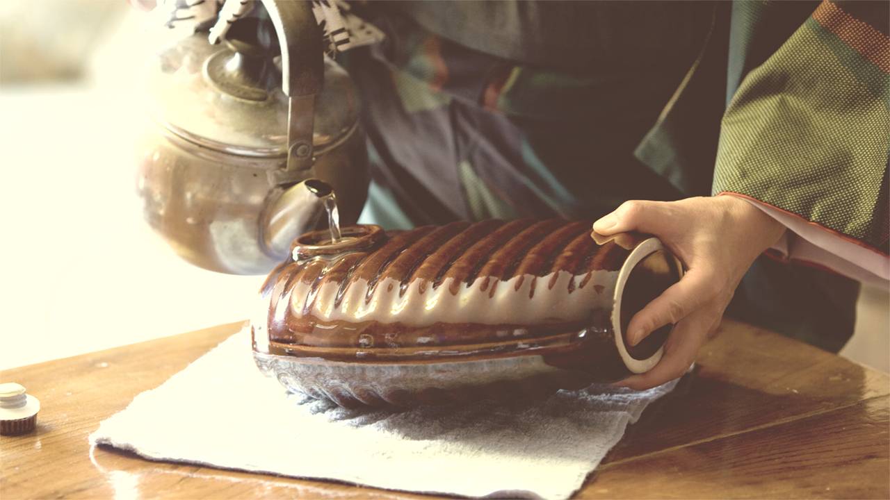 日本に現存する最古の湯たんぽは岐阜県多治見市で出土した「黄瀬戸織部流し湯婆(きぜとおりべながしたんぽ)」。詳細は不明ですが、緑色の釉薬に高価な銅が使われていることから、高貴な身分の人が用いたものでしょう。