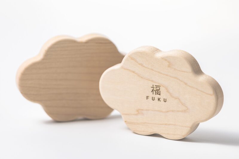 そして、「福 FUKU」の刻印が施された台座がセット。まるで雲に乗りながら手を上げて福を招いてくれているような、なんとも愛おしいフォルム♪