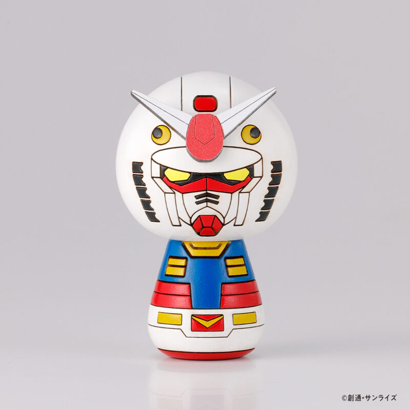 『機動戦士ガンダム』より、ガンダム、シャア専用ザク、量産型ザクがこけしに。細かなディテールも見事に再現されており、小さなサイズながら、ガンダムの世界観を演出しています。
