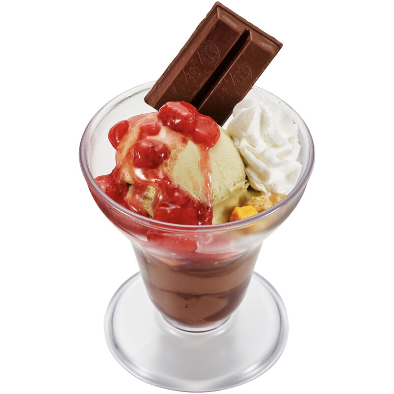 なめらかなチョコプリンに、ふんわりとしたホイップクリームと濃厚なチョコソースをかけ、「キットカット」1枚を贅沢にトッピング。リッチなカカオ感と、サクッサクとしたウエハースの香ばしい風味が口いっぱいに広がる、プレミアムな味わいを堪能♪